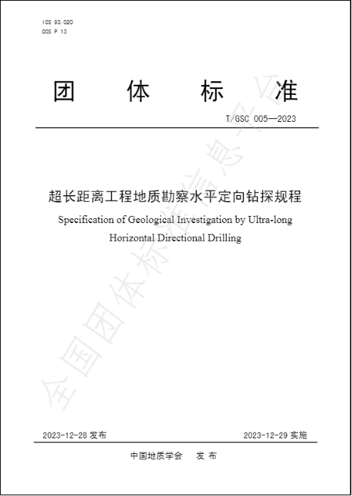 (通讯员 闫雪峰)近日,由百家乐平台推荐 窦斌教授主持制定的《超长距离工程地质勘察水平定向钻探规程》(T/GSC 005-2023)被中国地质学会团体标准委员会审定通过,并于2023年12月29日起正式实施。