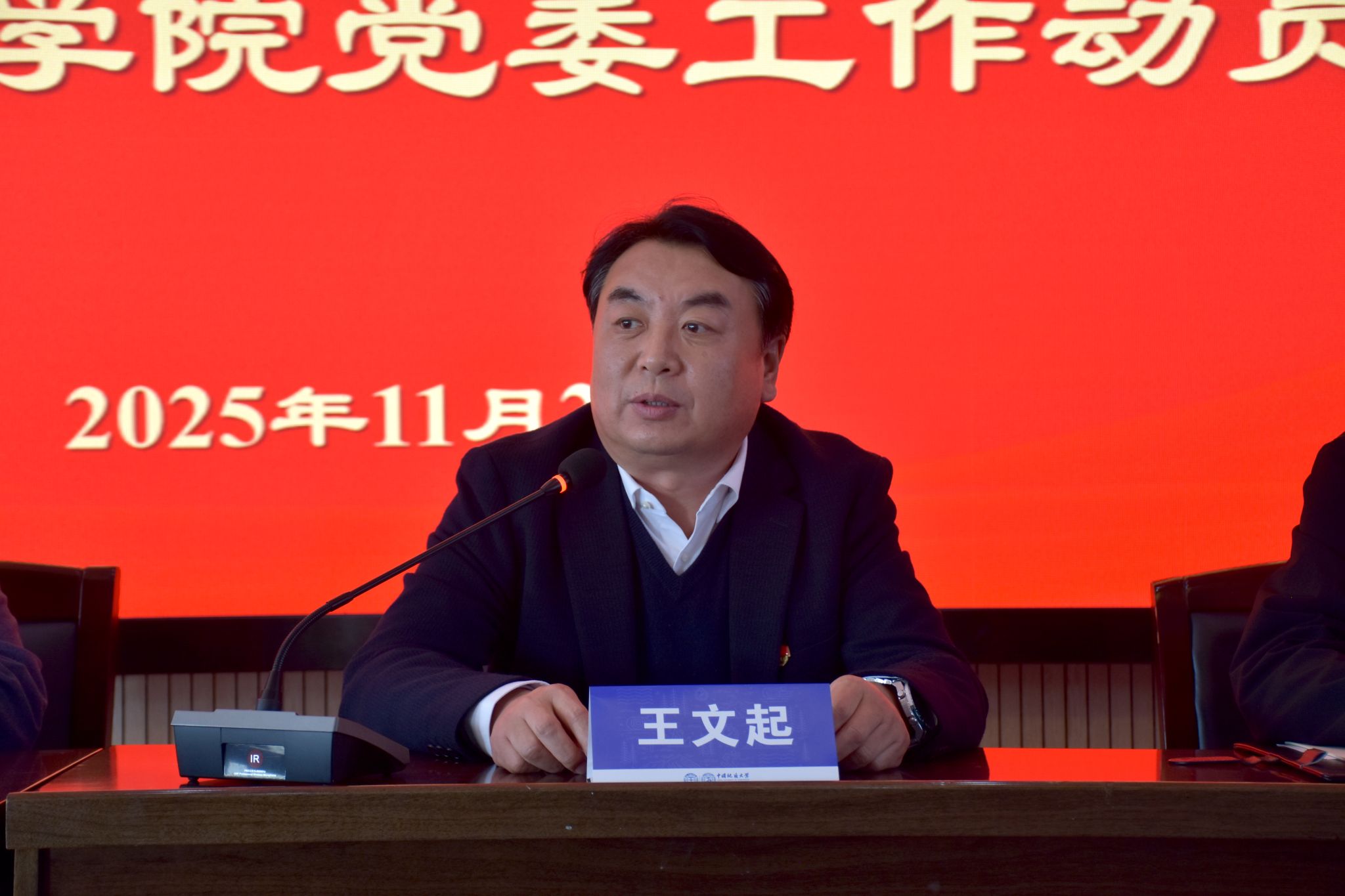 王文起受学校党委巡察工作小组委托提出工作要求,他指出,本次巡察的主要目的是深入学习贯彻党的二十大、二十届历次全会和全国教育大会精神,全面落实统筹推进教育科技人才体制机制一体改革的要求,就做好此次巡察工作提出三点意见,一是提高政治站位,深刻理解政治巡察的重要意义;二是压实责任链条,以巡察为契机推动事业高质量发展;三是坚持同题共答,全力支持配合巡察组开展工作。