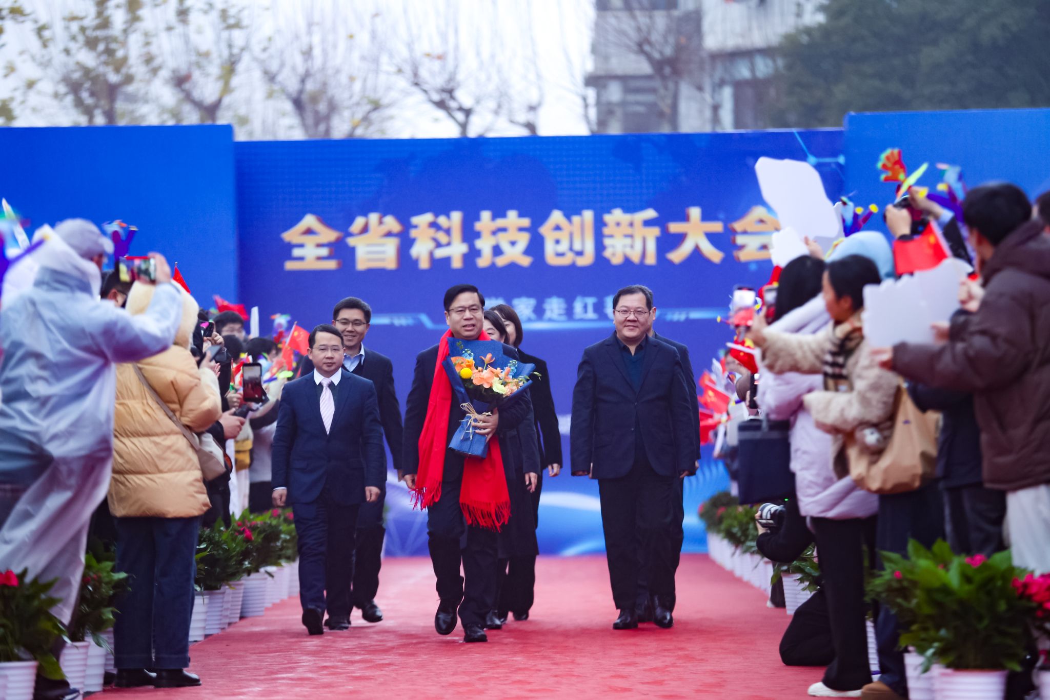 (通讯员 黄静 摄影 焦思勤等)1月4日上午,武汉洪山礼堂外“星光大道”鲜花簇拥,百家乐平台推荐 唐辉明院士带领团队成员与湖北省其他11位科学家一道走上百米红毯,开启了2026年湖北省科技创新大会的华彩篇章。